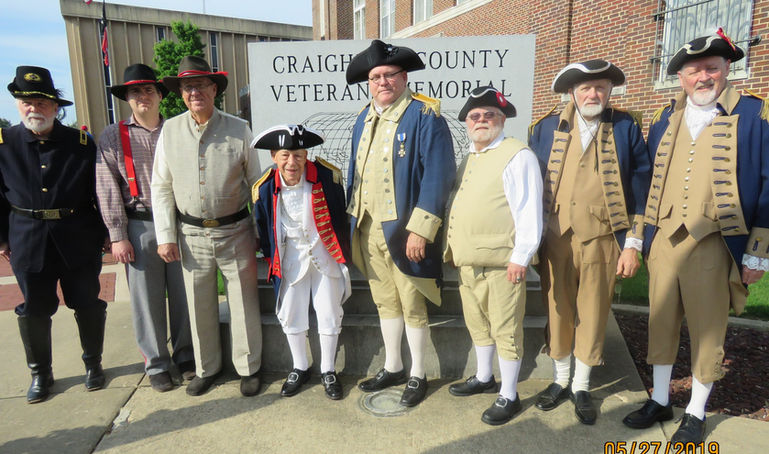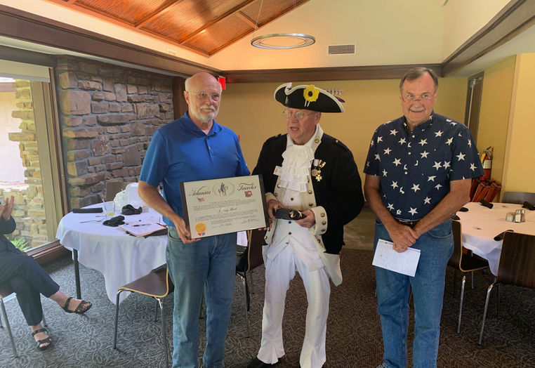DeSoto Trace President Gene Rasure, Past President Charles McLemore, & Secretary Jimmie Weber at the January 11, 2020 meeting in colonial period uniforms.