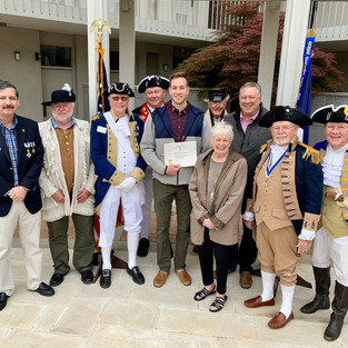 The officers of the DeSoto Trace Chapter conducted a new member induction on April 16, 2021 at the First United Methodist Church in Hot Springs. The ceremony took place at the Columbarium where recently deceased member George "Ted" Carrithers, father & grandfather of the new members Tim, Ross & Hunter Carrithers was interred. Two brothers were inducted on April 1, 2021 Bob Shewmake (L) President Gene Rasure (C), & Wayne Shewmake (R).